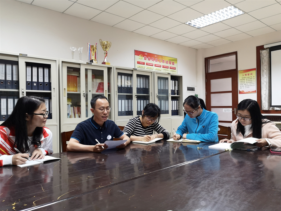 为贯彻落实广东省教育大会精神,KY开元集团官网2018级学生党支部联合流动党支部于5月9日中午在第二行政楼307党员活动室进行学习相关内容,会议由刘万里主持,党员杨超、郭伊芸、洪希琳、钟敏华出席了本次学习。