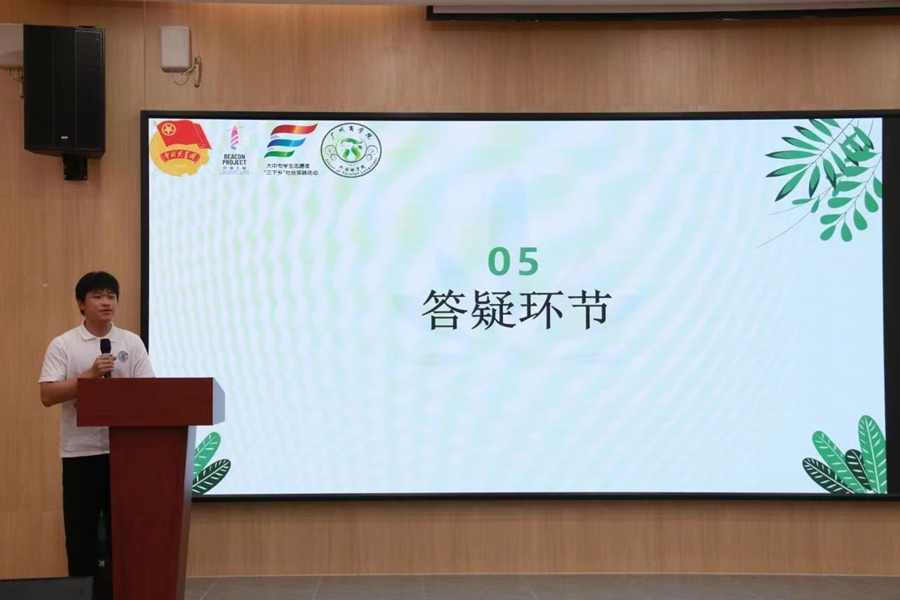 KY官网团委实践部部长陈敏枫进行本次“三下乡暑期社会实践活动的介绍,她围绕“一个重点、三个专项、三个目标”的“1+3+3模式”介绍了本次以“青春赤尾行,多彩下乡路”为主题的暑期“三下乡”社会实践活动、活动的预期成果及活动过程中的相关注意事项。两位指导老师及队长针对同学们的疑问作出了现场答疑。