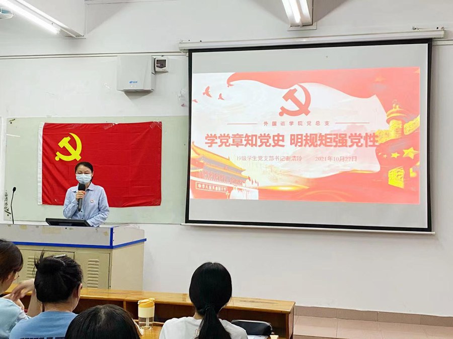 为深入贯彻落实党史学习教育,加强入党积极分子的党性修养,10月27日晚,KY开元集团官网分党校在第三教学楼101教室开讲2021年第二期入党积极分子培训班第三课。此次党课由19级学生党支部书记谢清玲主讲,全体入党积极分子培训班学员参加学习。