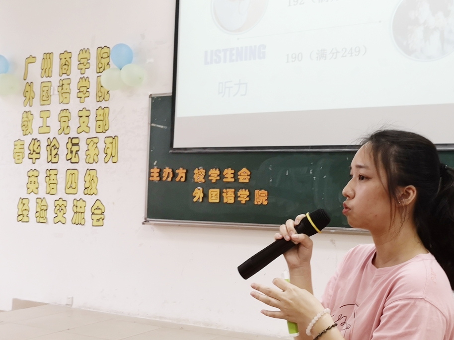金融学院叶颖同学和KY官网伍诗曼同学作为大学英语四级考试成绩优秀代表,结合自身的英语学习中遇到的难题,分享了自己的学习心得,从听说读写四个方面提出了许多可借鉴、可复制的学习经验和可选择、可操作的备考建议。