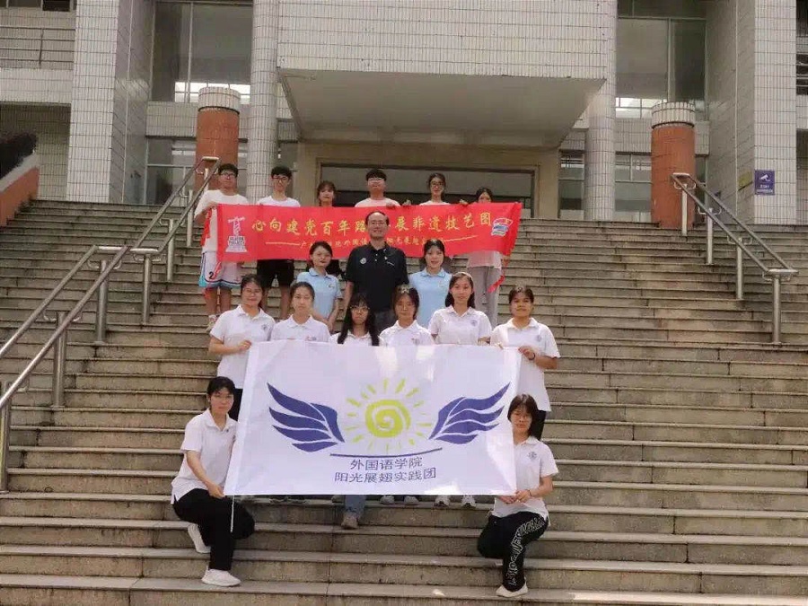2021年7月16日,KY开元集团官网阳光展翅实践团在第一教学楼前举行了以“心向建党百年路,共展非遗技艺图”为主题的2021年暑期“三下乡”社会实践活动启动仪式。出席本次启动仪式的有KY开元集团官网党总支书记徐超,KY开元集团官网阳光展翅实践团指导老师蔡文蝶、谢清玲及阳光展翅实践团全体成员。