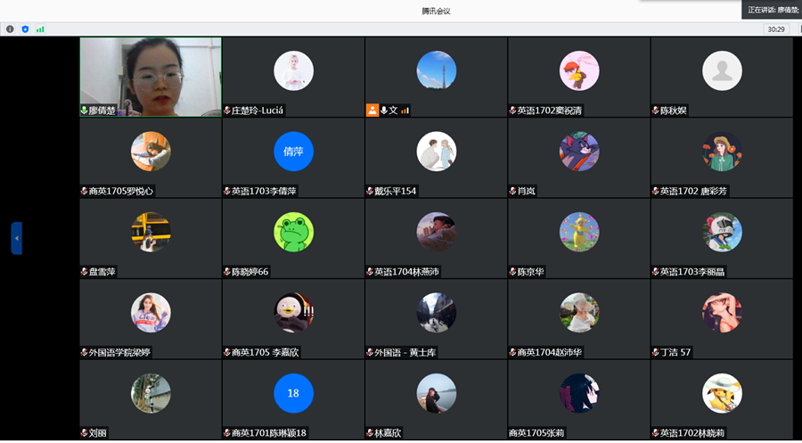 接下来是潘文晗老师进行毕业生实习与求职讲座。潘文晗老师肯定了廖倩楚同学的经验分享,并从就业政策、实习、写好求职信三个方面分别和大家进行分享。一是现在国家对大学生工作就业有许多优扶政策,我们也需要去官方网站上积极了解就业政策;二是实习与就业的关系十分紧密,选择实习和职业需要考虑社会需求等多个方面;三是写好求职信和远程面试有技巧,大家要注意培养自己的主动求职意识,遇到合适的工作机遇要善于主动把握,最后她还为大家提出了与外语专业岗位相关的中肯且有用的建议和忠告。
