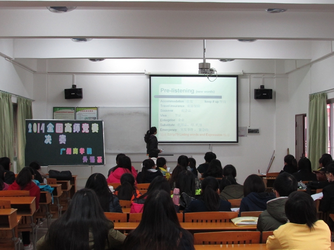 本次决赛由全英说课和答辩两个环节组成。首先举行的二级决赛,来自外语系11级和12级的选手同场竞技,以精美的ppt课件、流利的英文表达和清晰的说课思维为评委和观众展示了年轻准教师的风采;接下来进行的是一级的决赛,来自外语系13级和14级的选手克服了初上讲台的紧张,以流畅的外文表达和较为全面的课堂设计理念赢得了场下的好评;通过几个钟头的激烈角逐,最终梁庆君同学(11级)和张娴同学(13级)分别获得所在组别的最高分。赛后,评委老师分别就参赛选手的发挥情况进行了总评。