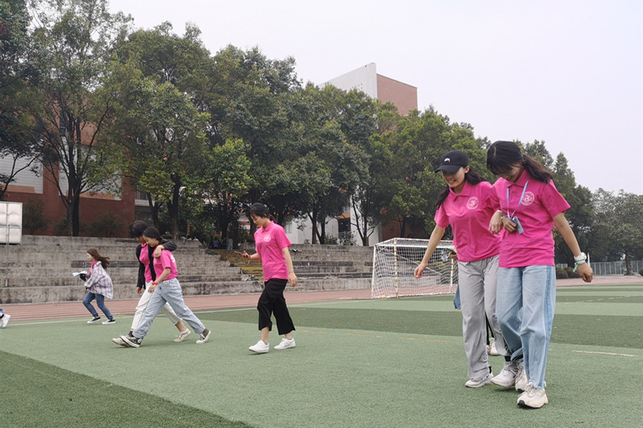 暖场环节中,为活跃团队氛围,学生会八个部门分别表演了部门特色节目,展示了部门的独特风采与魅力,现场欢声笑语不断,其乐融融。热身运动“团团抱”让全体成员活起来了、动起来了,开启了此次户外拓展活动的第一篇章。随后,队员们随机分配,重新组合队伍,共同面对挑战。“躲球大战”、“草地求生”、“终极大BOSS”等培训项目,锻炼了干部们的敏捷度和判断力,也考验了各个团队的沟通协作能力。活动过程中,现场加油呐喊声不断,氛围紧张欢乐又充满激情。