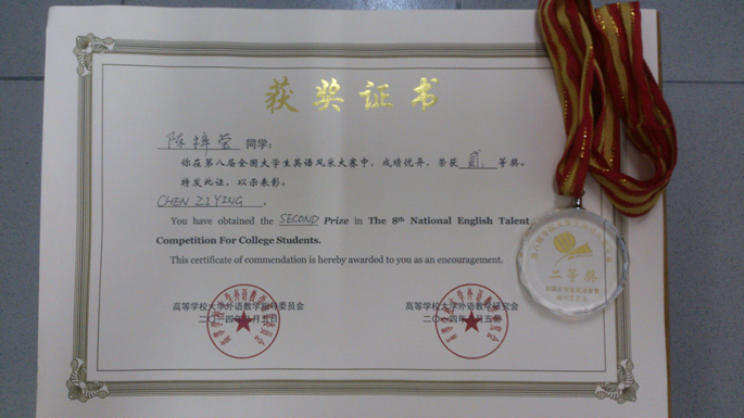 第八届全国大学生英语风采大赛二等奖