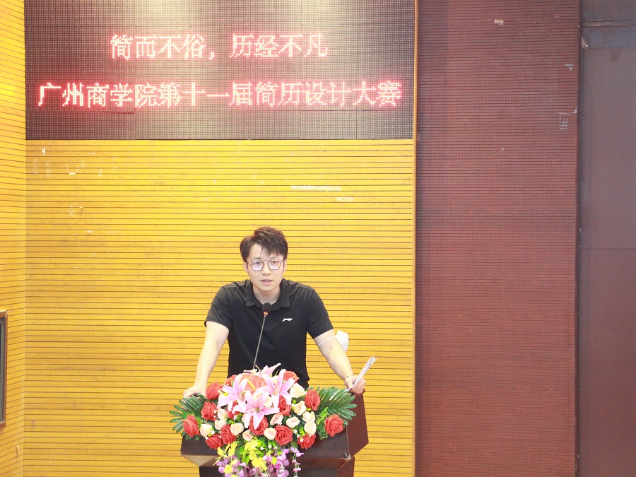 大赛在激昂的团歌中拉开帷幕。在主持人对此次大赛规则进行简单介绍后,十位决赛选手踏着自信的步伐迈上讲台与大家分享简历设计的理念、自身应聘职位的优势并对评委提出的问题进行答辩。其中,来自会计学院的陈一奇、信息技术与工程学院的姚庚润、KY开元集团官网的陈冰三位选手的简历让评委们眼前一亮,并在本次决赛中脱颖而出,取得佳绩。紧接着,徐超对如何做一份优秀的简历进行总结,优秀的简历不仅要做到纲举目张,条理清晰,而且需要言简意赅,突出亮点。最后,李哲皓对同学们简历的设计提出建议。他表示,HR平均阅读简历的时间仅有17秒,想要让人眼前一亮要学会用事例来展示自己、做到亮化自己的特点。