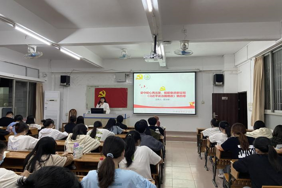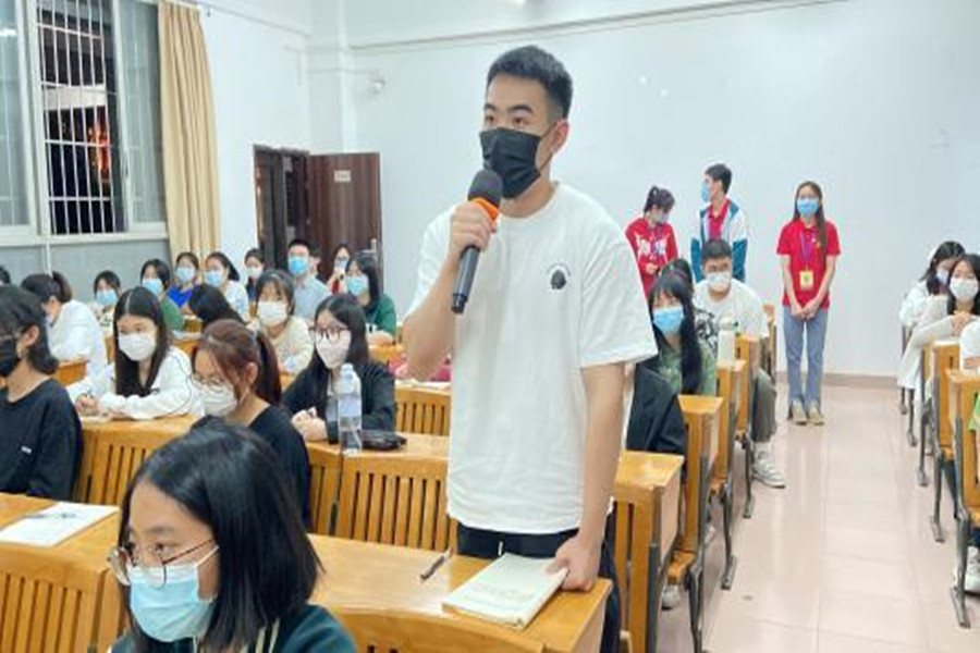 课上,蔡文蝶以张桂梅为切入点,向学员们详细讲解了什么是正确的入党动机,并列举焦裕禄和韩占文的入党申请书,进一步阐述了党员先进性和纯洁性的入党动机,让学员深刻理解入党动机的涵义。她提出“为什么大学生会存在入党动机偏差”等问题,让在场入党积极分子展开讨论并发言,接着从两个方面向学员们讲授如何坚守入党初心,一是主动接受党组织的培养教育和考察,积极学习党组织的理论知识并积极参加党组织活动;二是通过练好“脚力”、增强“眼力”、强化“脑力”和提升“笔力”主动实践。蔡文蝶结合《习近平谈治国理政》第四卷与《论党的青年工作》勉励新时代青年要坚定不移听党话、跟党走,怀抱梦想又脚踏实地,敢想敢为又善作善成,立志做有理想、敢担当、能吃苦、肯奋斗的新时代好青年,让青春在全面建设社会主义现代化国家的火热实践中绽放绚丽之花。