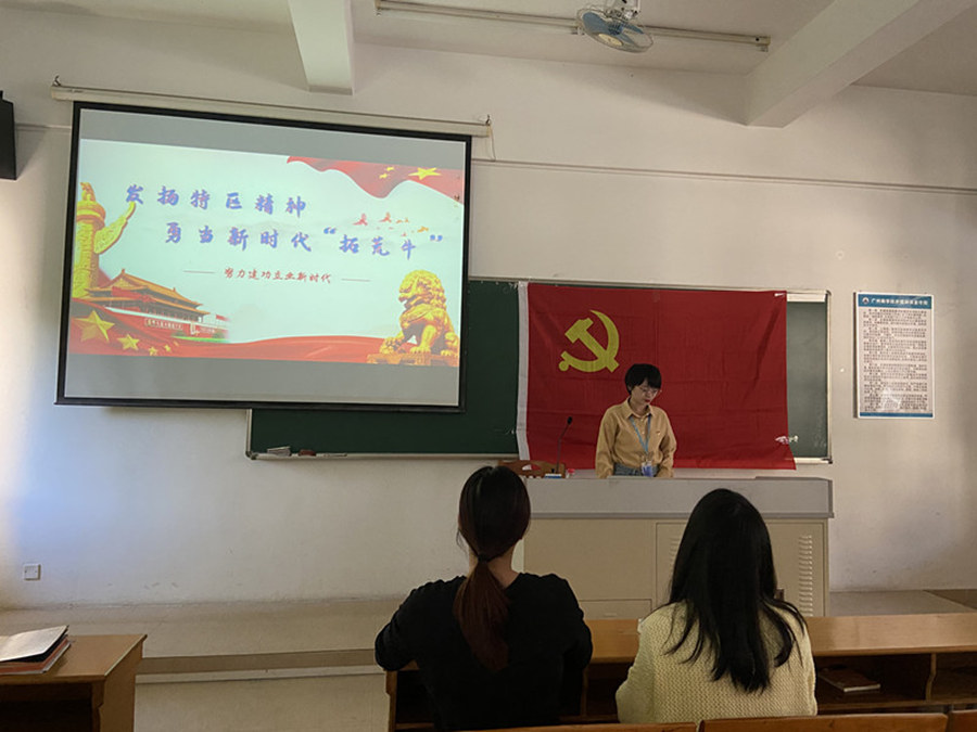 为深入学习、准确把握习近平总书记出席深圳经济特区建立40周年庆祝大会和视察广东重要讲话、重要指示精神的重大意义和丰富内涵,KY开元集团官网19级学生党支部于11月26日在第四教学楼302开展以《发扬特区精神,勇当“拓荒牛”》的学习研讨会。此次学习活动由19级学生党支部书记谢清玲主讲,19级学生党支部全体党员参与学习。