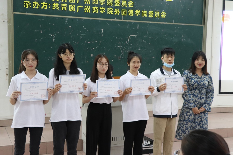 接着,团委书记赖雯慧宣读《关于共青团KY开元集团官网委员会表彰2020年暑期“三下乡”社会实践活动优秀志愿者的表彰决定》。徐超书记、赖雯慧老师、伍思颖老师和蔡文蝶老师对优秀个人进行颁奖,获奖者有: