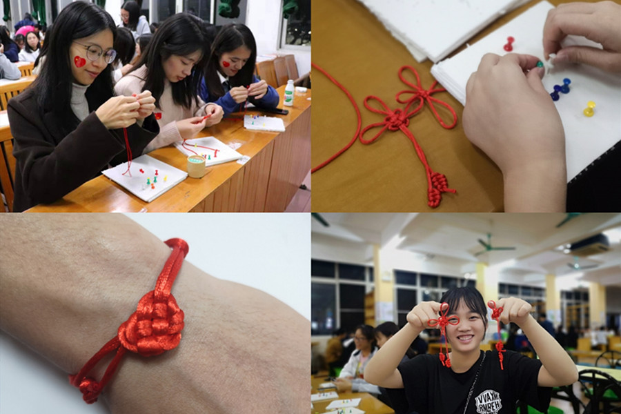 随后,在现场小老师的指导下,同学们怀着感恩之心让手中红色的一丝一线相互穿插,一个个饱含深情的中国结在同学们的手中逐渐诞生。在感恩节这样一个充满温暖的节日里,每个人都有许多想说的话、想表达的情,都寄托在那一纸小小的书签上,让它在五彩斑斓的中国地图上传达情意。随后,现场还进行了摄影比赛的颁奖典礼。