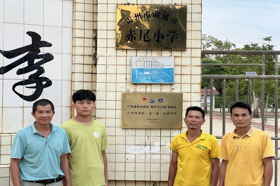 在赤尾村村干部的见证下,阳光展翅实践团学生代表曹国权为广东青年大学生“百千万工程”突击队KY开元集团官网·实“荔”出圈项目挂牌。牌匾挂在赤尾小学门口,标志着阳光展翅实践团实“荔”出圈项目取得了显著成效。
