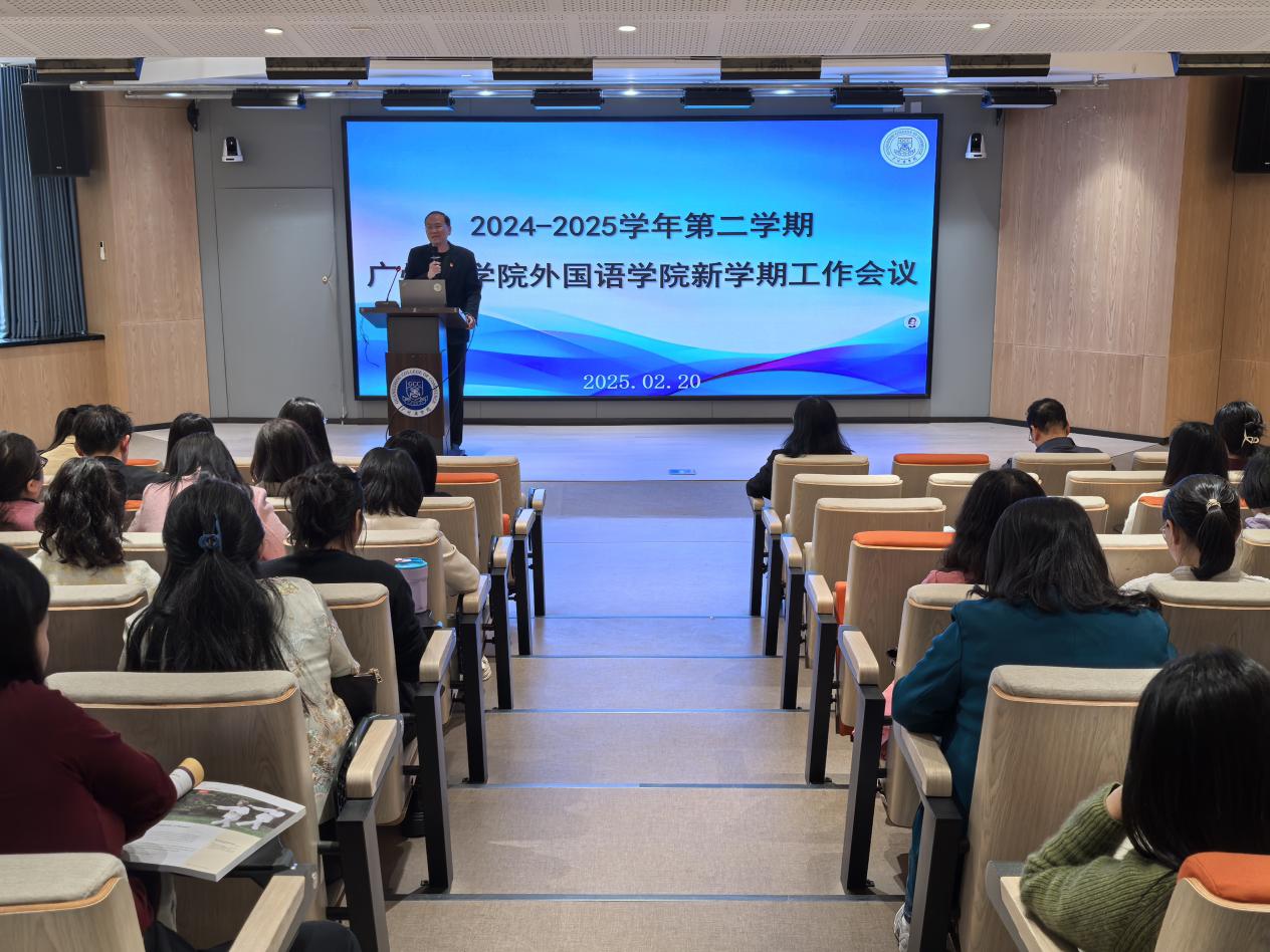 展望2025年,郭院长从党建、教学、科研、师资队伍建设、学生工作、行政管理、校企合作与对外交流等方面对学院的发展提出了新的目标和计划。她强调,学院将继续以党建为引领,深化教育教学改革,加强科研创新与师资队伍建设,稳步推进校企合作项目,探究AI如何赋能外语教育。最后,郭遂红院长针对AI技术赋能课程建设和教师数字素养提升进行了专题讲座。