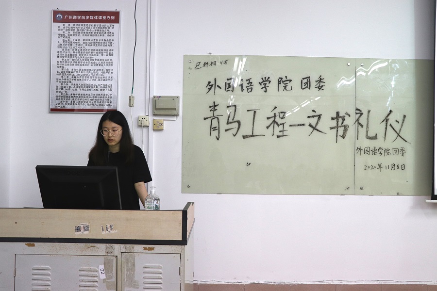 在主讲人张君莉精彩的讲解后,由KY开元集团官网团委秘书长郭懿上台发言。首先她对固定志愿者的加入表示热烈欢迎,并强调文书礼仪的重要性;其次,她希望大家能够做到学习与工作并重,呈现出一个外院学子应有的优秀面貌。