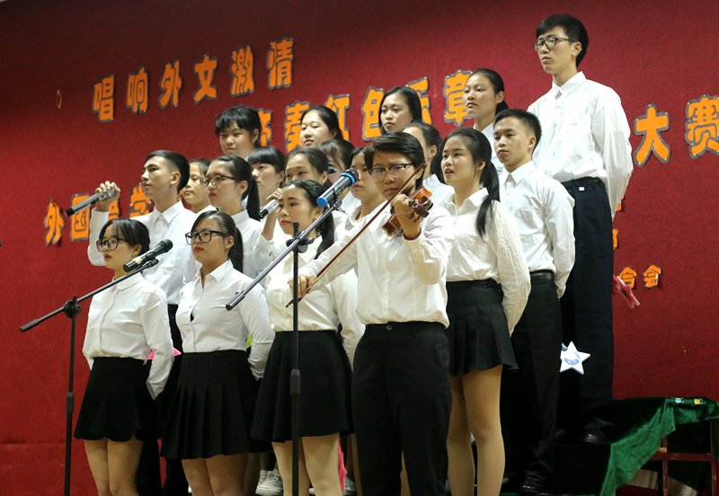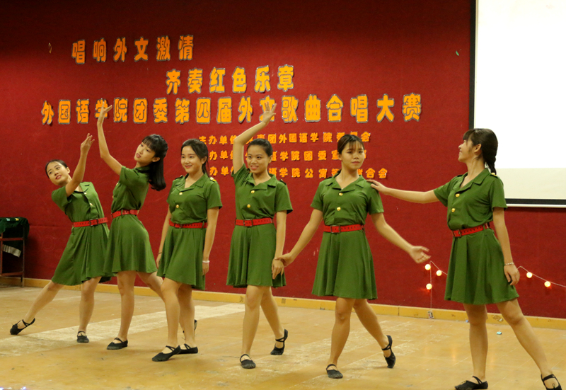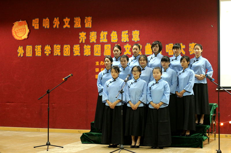 外文歌曲合唱大赛举办主要是为了培养学生外语交流能力和跨文化交际能力,是实现学生从不能、不敢开口表达外语到能够勇敢地站在舞台上大声唱出外文歌曲的重要举措;这项活动致力于发挥第二课堂的重要作用,借助朋辈互助的力量,以参赛为平台,强化学生的外语口语能力,激发外语学习的内动力,形成了良好的学风。