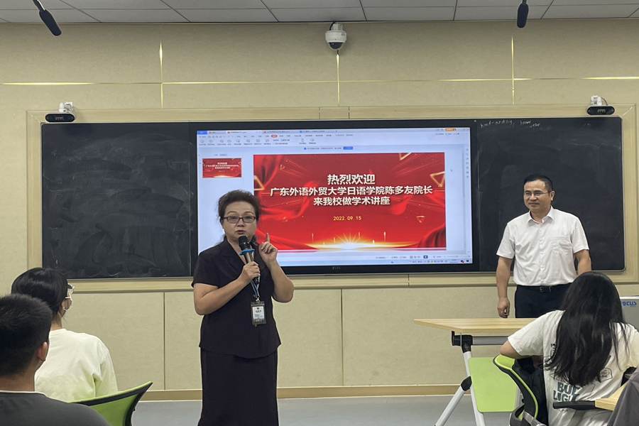 为响应日语系学生考研热情,9月15日上午,广东外语外贸大学日语语言、亚非语言文化学院(筹)陈多友院长应邀为我系大四学子开展日语考研专题讲座。本次讲座由刘小姗教授主持,在轻松、愉悦的氛围下圆满结束。