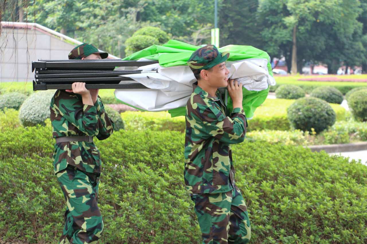 汗水淹没不了他们心中的信念,病痛击败不了他们心中的斗志。“或许你的身体无力承受军训,但你仍想尽一份微薄之力,那里有你亲爱的战友,那里是你践行的承诺,你从阳光中走来,只为送来甘甜与清凉。” 穿上一样的迷彩,具有一样的军魂,虽不可踏沙场,但风采依旧。