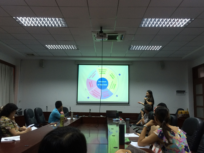 本次会议由外语系副主任袁鑫主持,外语系主任马蔚兰教授、英语专业学科带头人王友贵教授、高年级教师马静副教授、园区督导黄国都老师组成的答辩委员会,外语系各教研室主任、基础教研室全体教师和部分日语德语教师出席了此次会议。会上,基础英语教研室主任皇婉贞从英语专业学生“学什么”和“怎么学”两个角度详细并生动地介绍了该方案的人才培养目标定位、课程设置与教学方案以及教师团队建设。英语专业基础阶段教学团队在前期大量的问卷调查和公司走访调查之后,发现用人单位在人才评估时对员工职场沟通技能重视程度远远大于对其专业知识的重视程度,在教学方案中融合了人际沟通能力培养课程和项目,并把礼仪老师引入教学团队,形成了“教、学、做一体,全面发展”的基础阶段的应用型英语专业人才培养方案。王友贵教授及其他委员认真听取了方案陈述,并对该项改革构想进行了坦诚深入的剖析和讨论,会议气氛热烈,专家们和与会的各位老师各抒己见,踊跃发言,并提出了很多中肯的意见和建议。