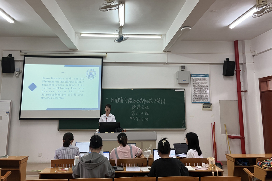 参加本次论文答辩共设34个答辩小组,四个专业都设有一个设有优秀毕业论文答辩组。整个答辩过程答辩老师和学生均采取外文进行。首先由学生全部以PPT演示的方式介绍论文结构,阐述主要观点。答辩老师们就选题思路、论文结构分析等方面进行了提问,同时对同学们的论文进行了点评,进一步完善修改的意见和建议。最后,每组三位答辩老师对毕业论文成绩进行了评定。