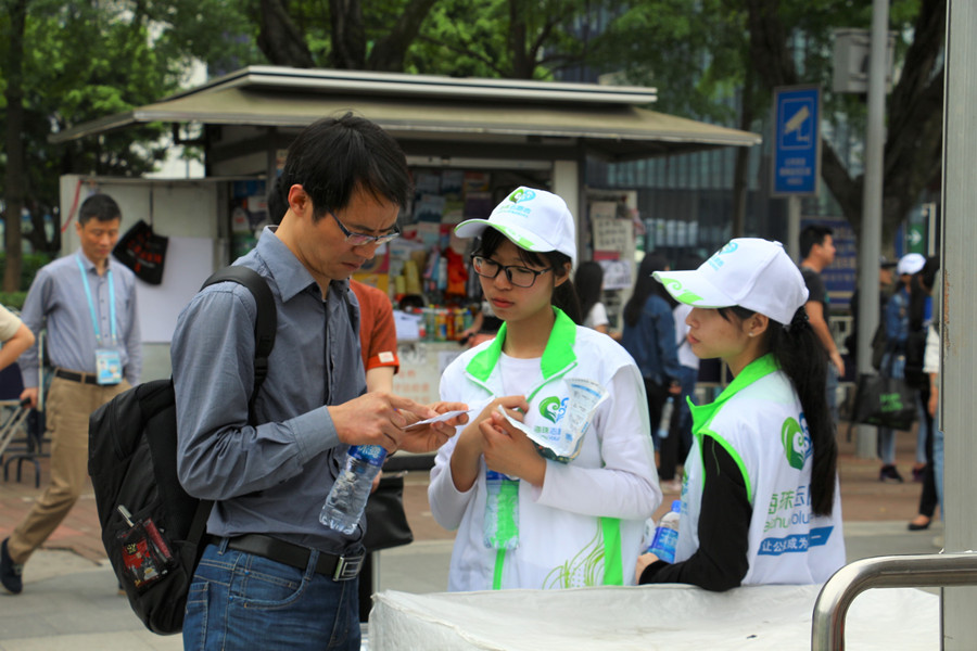 志愿者为商客指引路线