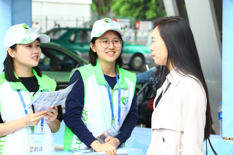 到达琶洲集合点后,志愿者们就服务场地先进行了解。海珠区青年志愿服务协会工作人员对志愿者们进行了岗前培训。在小队领队的带领下,40名志愿者分成两小队,前往不同的场馆区域开展服务活动,主要为来粤参展的中外客商提供交通指引、场馆导向、秩序维持等服务。志愿服务期间,KY官网志愿者以专业的技能、敬业的态度、灿烂的微笑和优质的服务一一为中外客商答疑解惑。