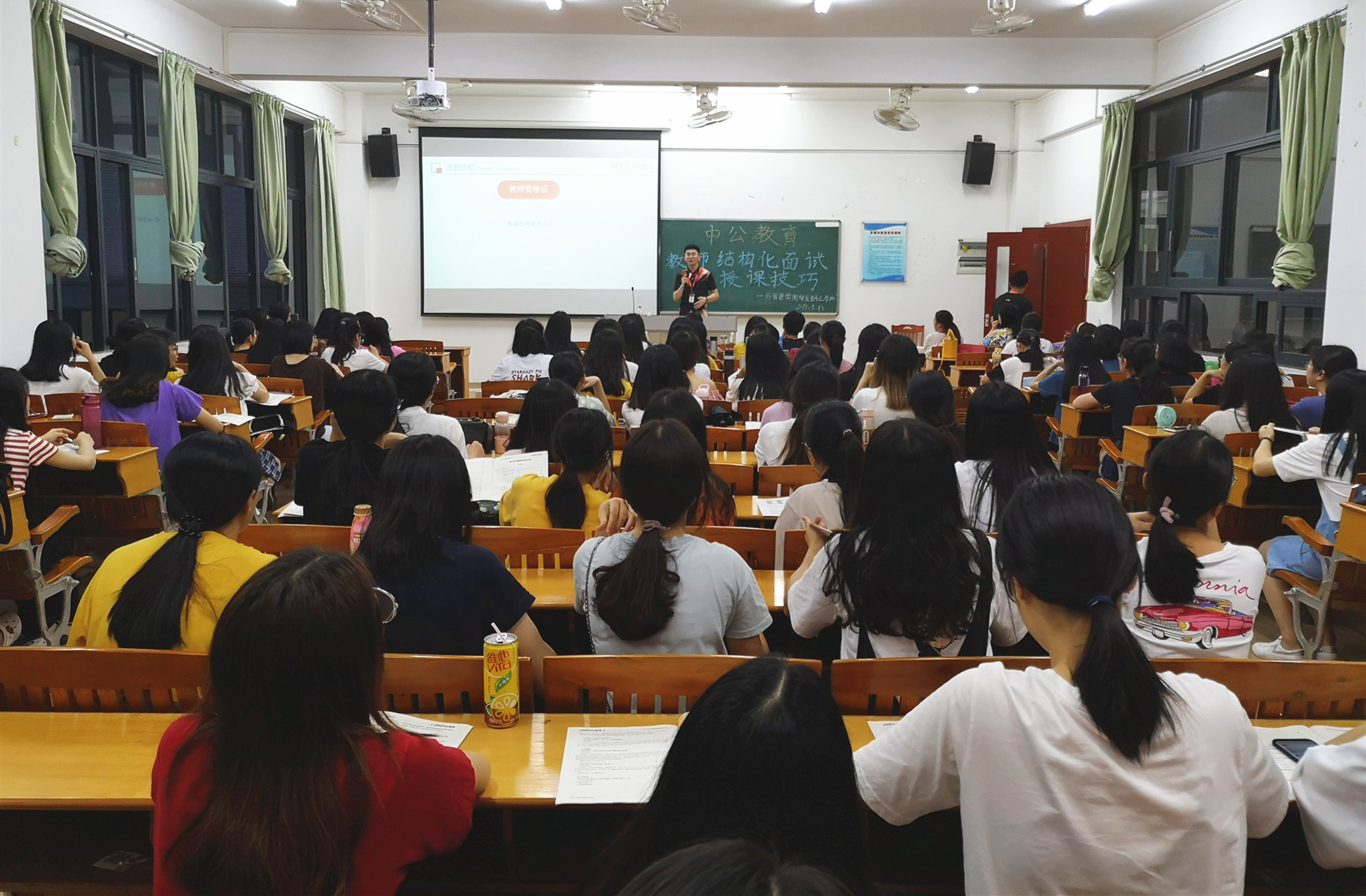 为进一步提高就业指导工作的实效性,做到就业服务工作体系化、课程化、精细化,5月13日晚19:00,KY官网于四教408开展师范技能培训系列活动第一期——“教师资格证结构化面试与授课技巧”专题培训。此次活动邀请了中公教育陕西研究院讲师曹煜杭作为主讲嘉宾,16级辅导员戴玮、郑灿玲出席现场,共有150多名学生参与了培训。
