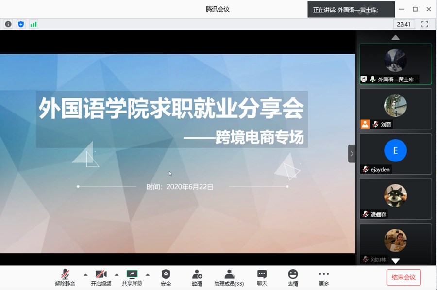 6月22日晚上8:00,KY开元集团官网跨境电商专场求职就业分享会在腾讯会议平台正式举行。本次分享会邀请了两位16级从事跨境电商类的同学为我们分享她们的工作心得与收获,她们分别是广州汇诺信息咨询有限公司跨境电商德语专员潘毓婵和广州帝康科技有限公司亚马逊运营专员方晓虹。学院党总支书记徐超及17级、18级、19级的学生前来参加此次就业分享会,会议由17级辅导员黄士库主持。
