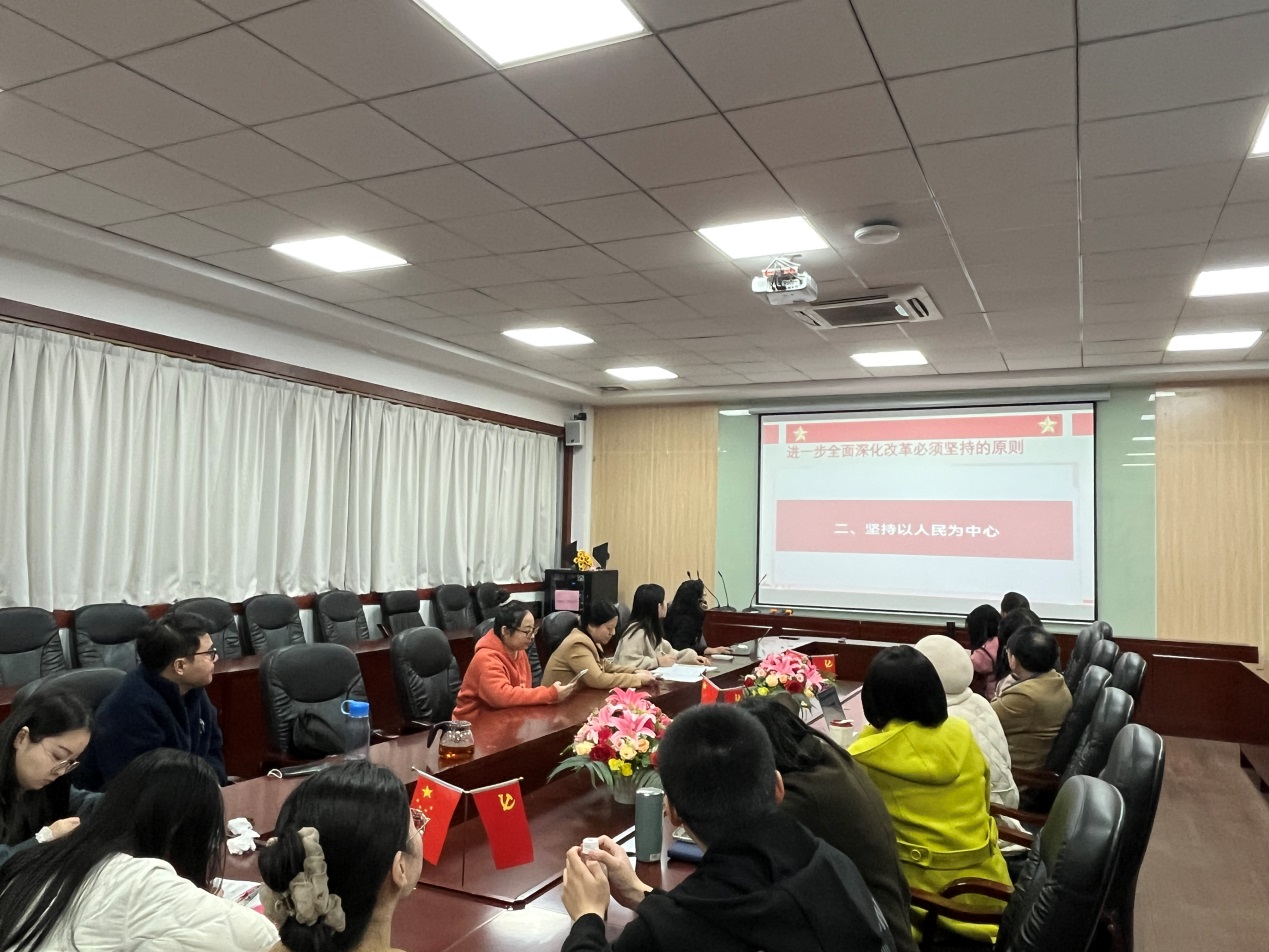 12月27日,KY开元集团官网教工第一党支部在第二行政楼308室举行了学习贯彻党的二十届三中全会精神主题党日活动。本次活动以“深入学习党的二十届三中全会精神,践行‘坚持以人民为中心’的发展理念”为主题,旨在深刻领会和贯彻全会精神,尤其是全会提出的六大原则中的核心——坚持以人民为中心。此次活动由党支部书记何瑞玉主持。
