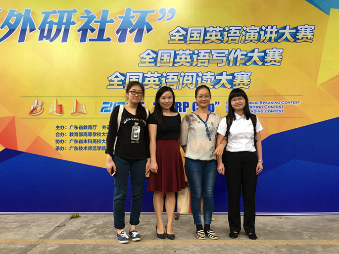 近日,由广东省教育厅和外语教学与研究出版社主办、教育部高等学校大学外语教学指导委员会和教育部高等学校英语专业指导分委员会合办、广东省本科高校大学英语课程教学指导委员会协办的“外研社杯”全国英语写作大赛和阅读大赛在广东技术师范学院举行。本次大赛有来自广东省45所本科高校的200多名选手同台竞技、一展风采。我系两名参赛选手经过层层角逐,荣获佳绩。我系2013级黄苗苗同学荣获写作大赛三等奖(姚丽芳老师指导),2012级郭茵同学荣获阅读大赛三等奖(袁楚娜老师指导)。