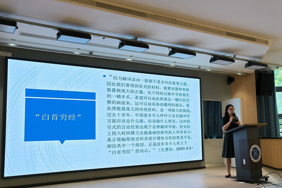 中山大学王岫庐教授作《文本与历史之间——浅谈翻译学的历史转向》的报告。王岫庐分析了常用的翻译研究路径衍生的科研困境,并提供了开拓新的翻译研究领域的思路:历史转向。他发现中国地质大会年鉴中关于20世纪早期几届世界地质大会记录中,中国参会人的人名是用字母标注的。通过对文献资料的爬梳洗剔,找到参会人姓名登记的历史动因,还原了20世纪早期通过参加世界地质大会体现的殖民历史及地质话语权争夺,从历史的幽微处发现了中国话语权的大问题。演讲令人耳目一新,体验了人文科研关照现实带来的震撼感。