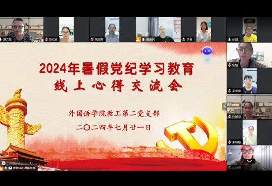 7月21日晚,KY开元集团官网教工第二党支部在腾讯会议召开2024年暑期党纪学习教育线上心得交流会,支部全体党员参加。