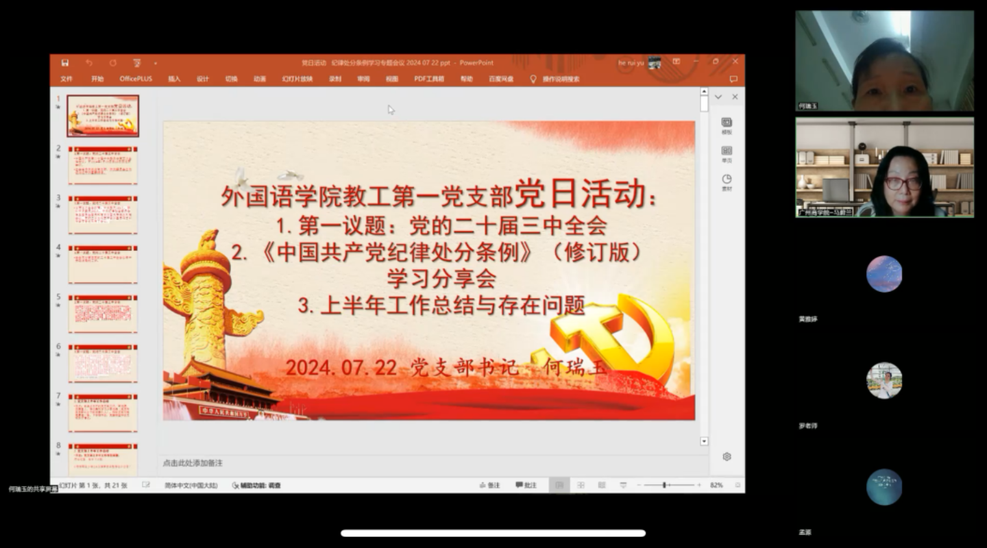 为进一步推动党纪学习教育走深走实,提高党员的纪律意识和规矩意识,KY开元集团官网教工第一党支部于7月22日晚,在线上开展了新修订的《中国共产党纪律处分条例》(以下简称《条例》)学习分享的主题党日活动。党支部书记何瑞玉主持会议。