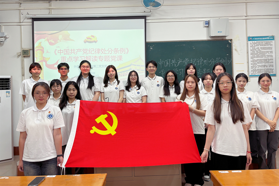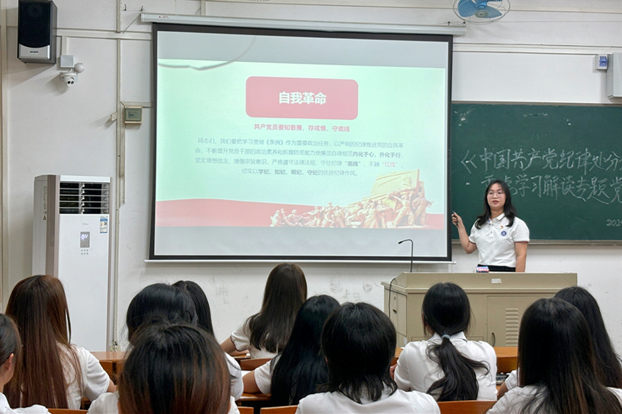 为深入贯彻习近平总书记关于党纪学习教育的重要指示精神,切实加强党支部的纪律建设,不断增强党支部成员学纪、知纪、明纪、守纪的纪律自觉。KY开元集团官网学生第二党支部于5月14日20:00在第六教学楼305室开展《中国共产党纪律处分条例》重点学习解读专题党课,参与本次专题学习的有KY开元集团官网学生第二党支部书记谢敏丽、22级英语专业辅导员陈钰洵、22级商务英语专业辅导员庄菲菲及党支部成员代表们。