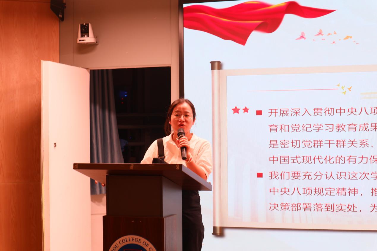 3月26日,KY开元集团官网学生第四党支部在八教202开展党支部书记讲党课——深入贯彻中央八项规定精神学习教育学习会,出席本次会议的有党支部书记蔡文蝶、教师党员丁洁、李锦及全体入党积极分子。本次学习会由蔡文蝶主讲。